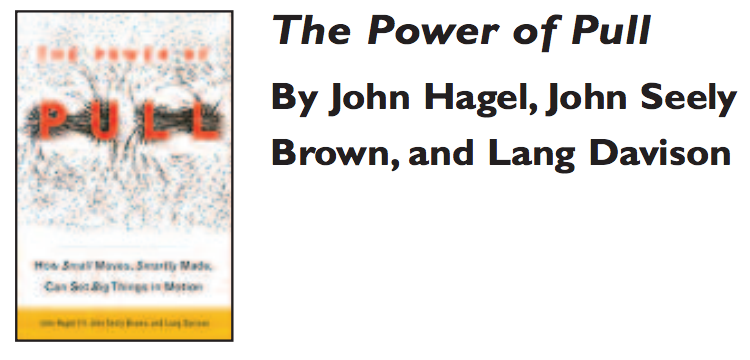 American inventor Charles Kettering said:, “My interest is in the future because I am going to spend the rest of my life there.” He would have loved The Power of Pull: How Small Moves, Smartly Made, Can Set Big Things in Motion (Basic Books, 2010) by John Hagel III, John Seely Brown, and Lang Davison.